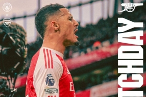 阿森纳官方社媒发布了为此役制作的海报,队内后卫萨利巴单人出镜。