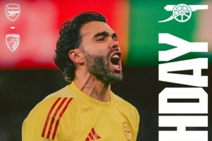 阿森纳官方社媒发布了为此役制作的海报,队内门将拉亚单人出镜。