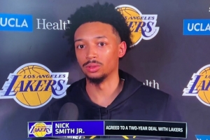 体育资讯4月13日讯 NBA常规赛,湖人vs爵士。赛前小尼克·史密斯接受了采访。